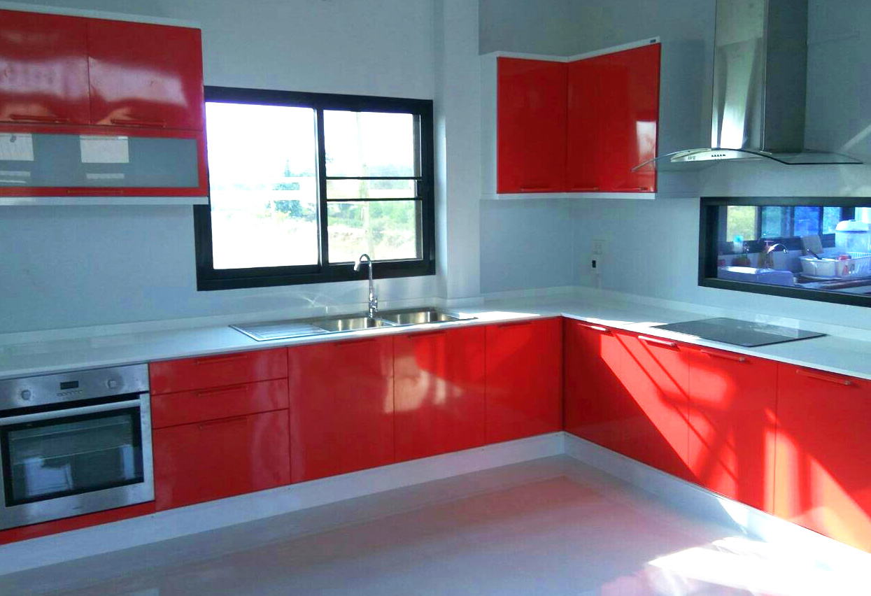 ภาพตัวอย่างงานติดตั้งชุดครัว พร้อมอุปกรณ์อ่าง เตา เครื่องดูดควันและเตาอบครบset